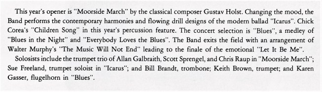 - Marching Band Show – Click here to view the show write-up.