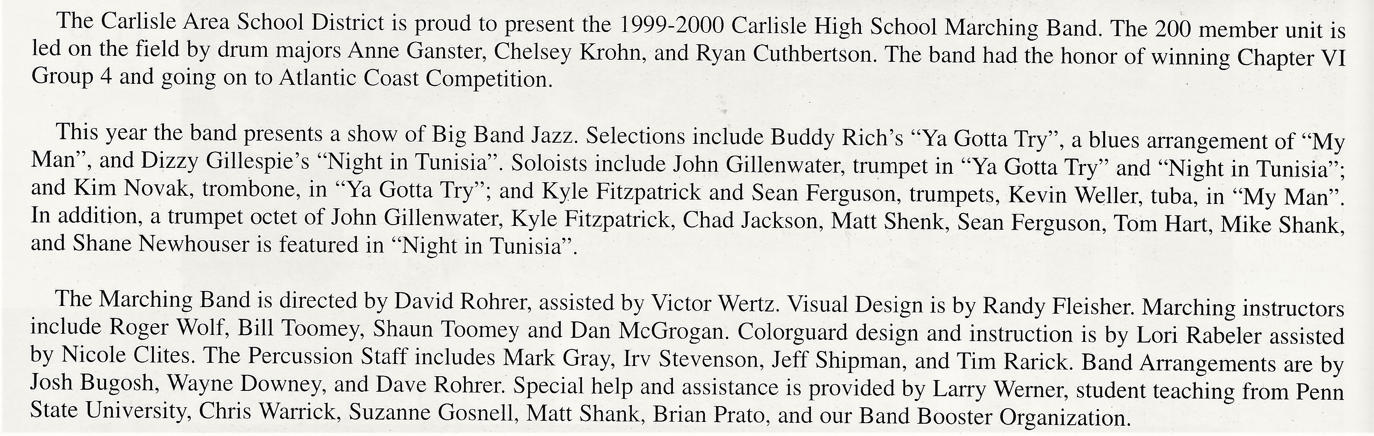 - Marching Band Show – “Aaron Copland’s BILLY THE KID” – Click here to view the show write-up.