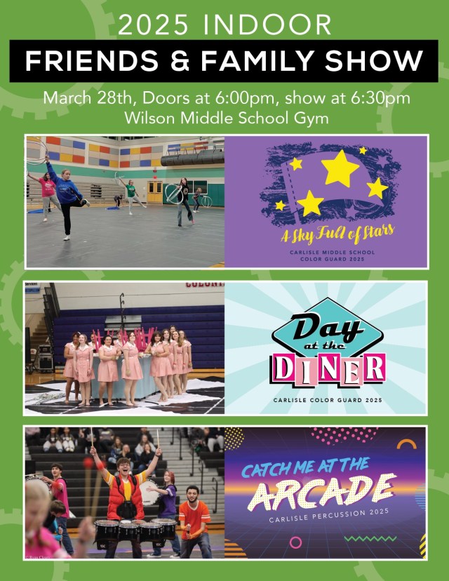 This weekend will be the kickoff to the Indoor Guard and Indoor Percussion competition season. KIDA has their Preview Show on 1/18 at Central Dauphin High School, and Carlisle’s indoor groups will both be there! Come to the competition and support our students!